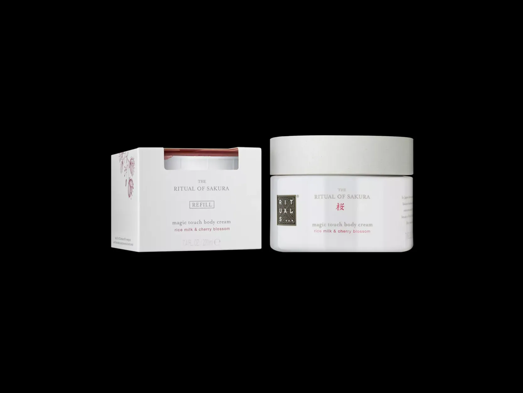 Sinta cada dia como um novo começo com o creme de corpo The Ritual of Sakura. Enriquecido com a delicada fragrância da flor de cerejeira e do leite de arroz nutritivo, este creme aveludado é um mimo para os sentidos e para a sua pele. Este magnífico coffret contém um creme de corpo de tamanho grande e uma recarga, pelo que pode desfrutar dos ingredientes e da fragrância da flor de cerejeira japonesa durante meses sem fim.