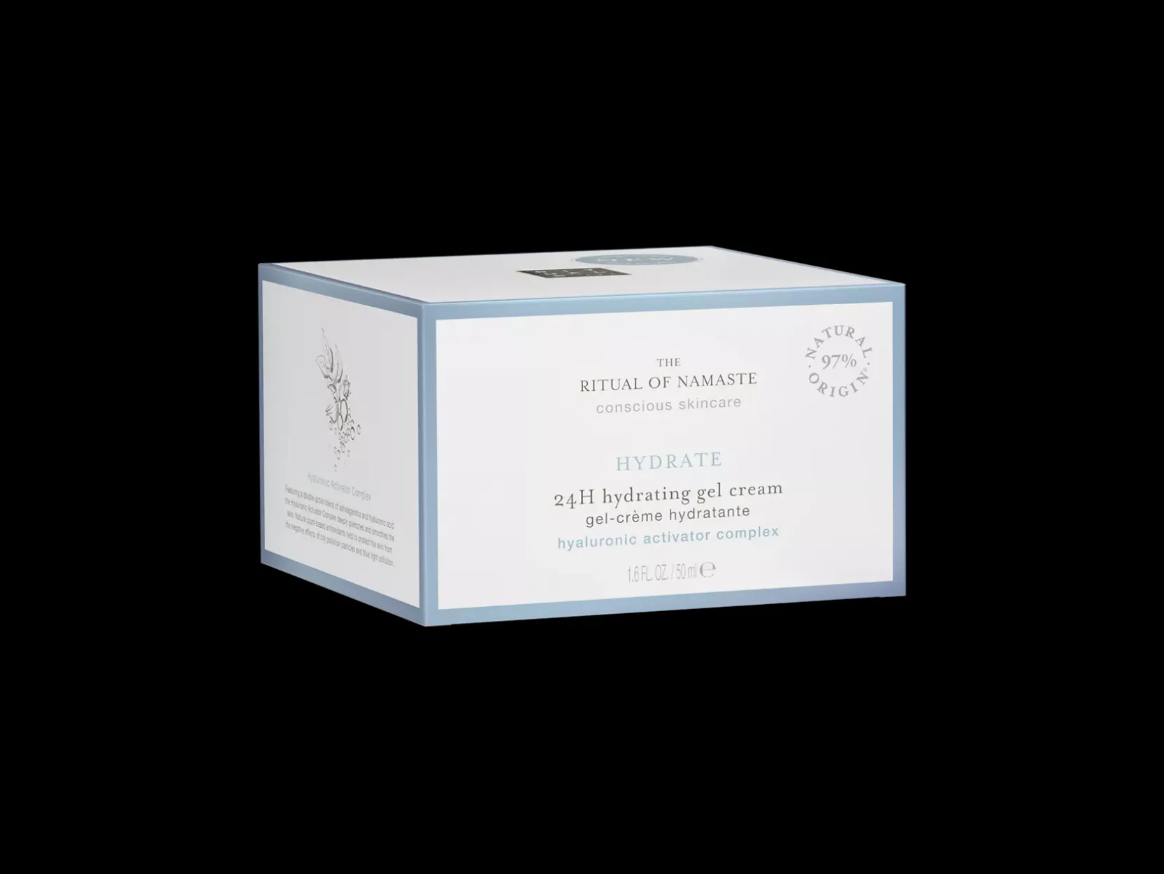 Um creme em gel fresco e reparador para uma hidratação intensiva. Contém uma combinação ativa de ácido hialurónico e ashwagandha, o Hyaluronic Activator Complex.