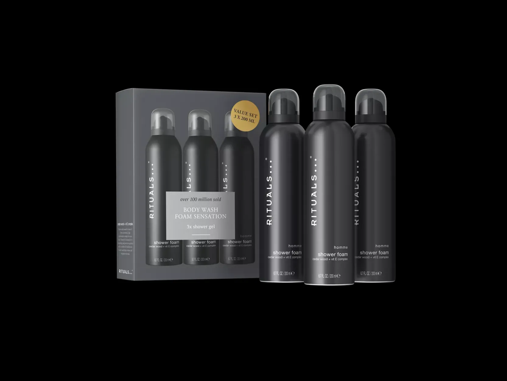 A forma perfeita de se mimar ou de mimar alguém de quem gosta, este magnífico coffret inclui três espumas de duche de tamanho normal. A espuma de duche da Homme Collection limpa em profundidade, libertando a pele da poluição e das impurezas do dia. A fórmula contém um complexo de madeira de cedro + de vitamina E revigorante, que ajuda a melhorar a qualidade da pele, proporcionando-lhe um estímulo refirmante e rejuvenescedor. O resultado? Uma pele de aparência saudável, radiante, com uma textura suave e macia.