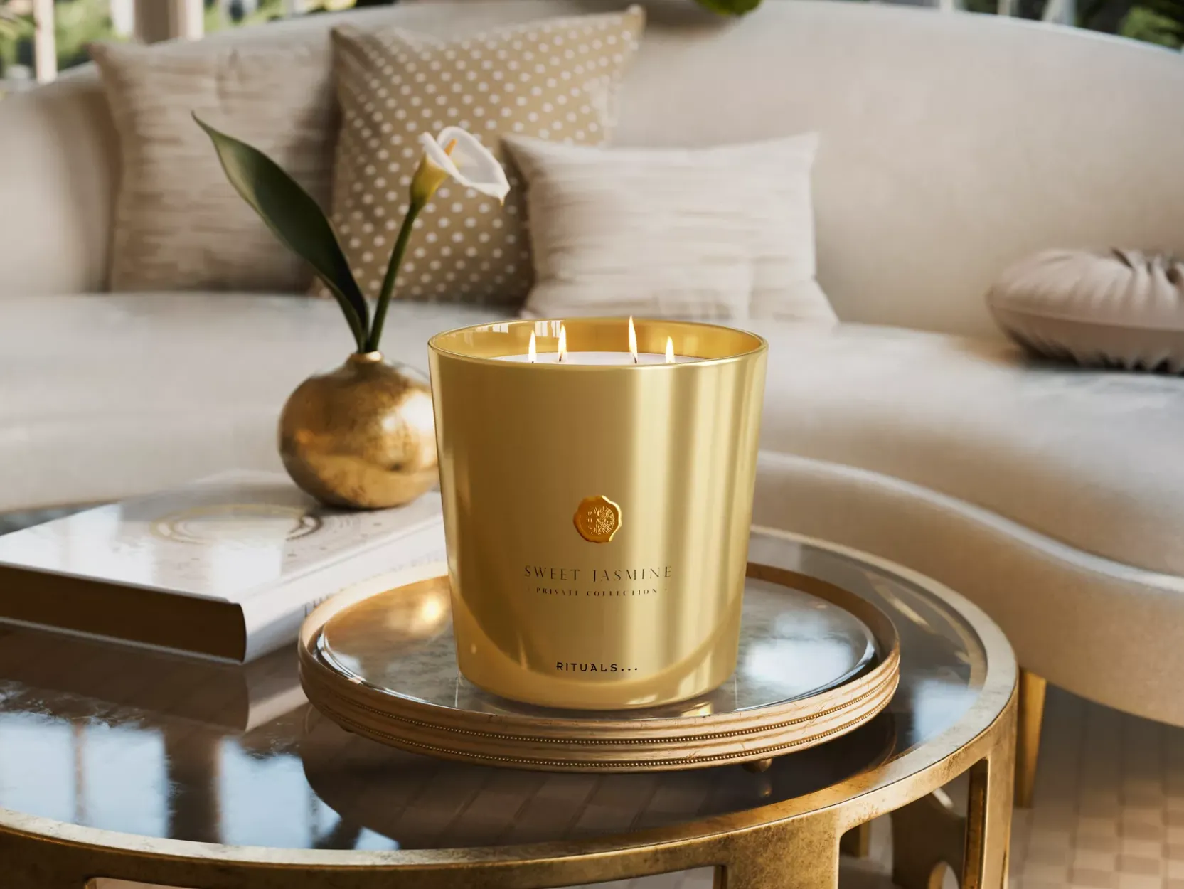 Crie uma sensação de calma em sua casa com a luxuosa vela perfumada Sweet Jasmine. Esta vela perfumada é um verdadeiro chamariz para a casa e proporciona uma explosão de fragrância em divisões maiores, como a sala de estar ou um grande corredor. As vibrantes notas frutadas, à base de citrinos e frutos silvestres dão lugar a uma harmonia de flores como a peónia e o muguet. E a madeira de sândalo dá um toque elegante e reconfortante à fragrância. É uma fragrância de que pode desfrutar, assim como as pessoas de quem mais gosta, durante até 150 horas. O elegante frasco de vidro dourado tem um acabamento metalizado e mate que lhe permite desfrutar do tremeluzir subtil da vela no seu interior. O exterior mate confere um toque de sofisticação, pelo que é o complemento perfeito para qualquer decoração, seja para o seu próprio espaço ou para oferecer. Depois de a vela acabar, reutilize o recipiente para colocar flores, lápis ou pincéis.